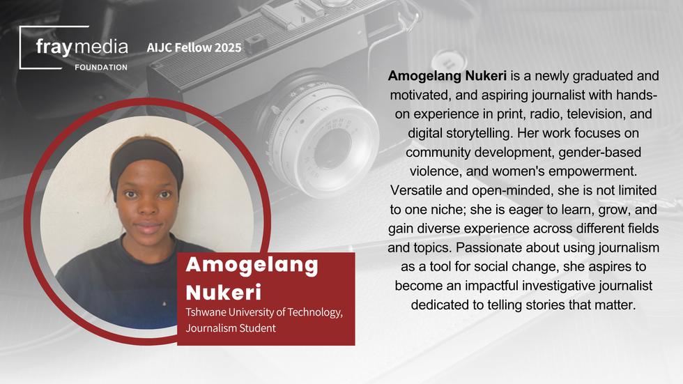 The fraymedia Foundation AIJC 2025 Fellows are: 1. Lisabeal Nqamqhele- Habari Media, Editorial Intern